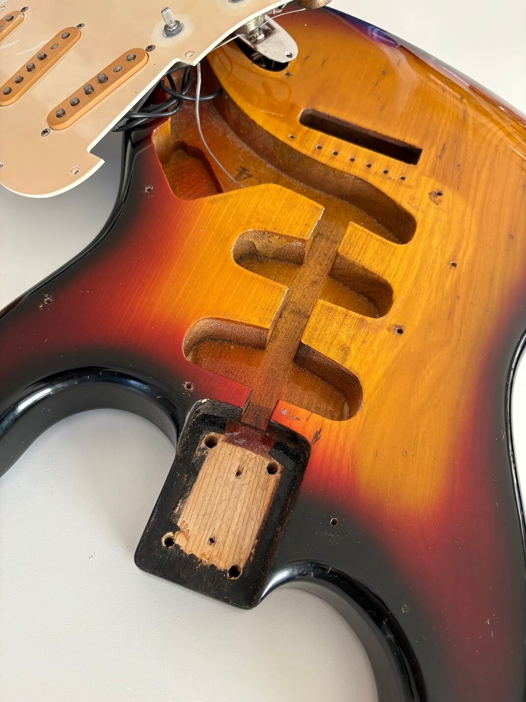 Paint damage on headstock logo